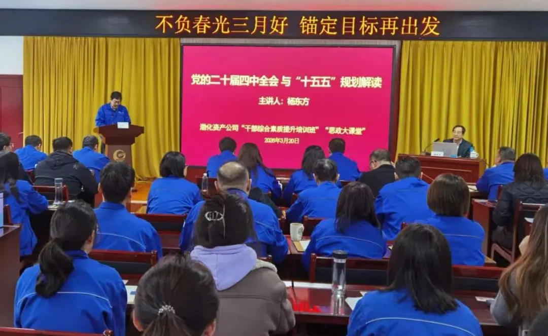 为深入学习贯彻党的二十届四中全会精神,准确把握“十五五”规划方向,2026年3月20日,渤化资产公司举办2026年第一期“干部综合素质提升培训班”暨党员“思政大课堂”培训。会议由公司党委书记、董事长高永立主持,渤化资产公司两级班子成员、中层干部、后备干部、优秀年轻干部、行业党员等200余人参加培训。