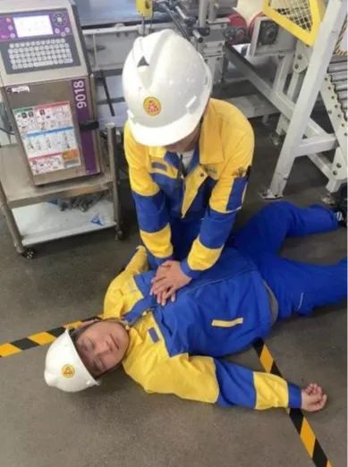 2.为扎实开展“安全生产月”活动,进一步提升现场作业人员的应急能力和安全意识,物流公司在渤化发展PVC包装厂房开展触电应急演练,模拟“一名职工在检查过程中触电倒地急需救援”的场景,对其展开救援。演练中,现场监护人员发现险情后立即断电,对触电人员进行紧急抢救并联系救援车,直至触电人员脱离危险,整个模拟应急救援过程环环相扣,各应急小组各司其职、行动迅速、操作规范,达到了预期效果,全面提升了公司职工的应急能力。